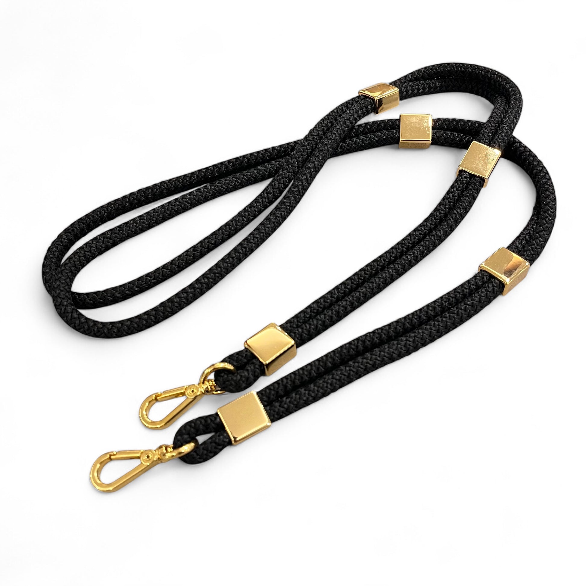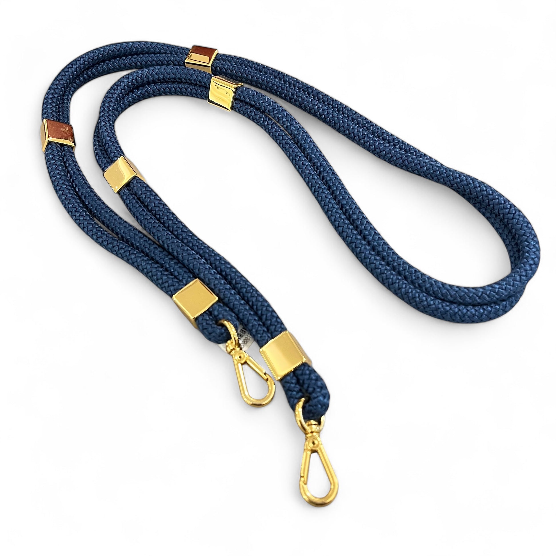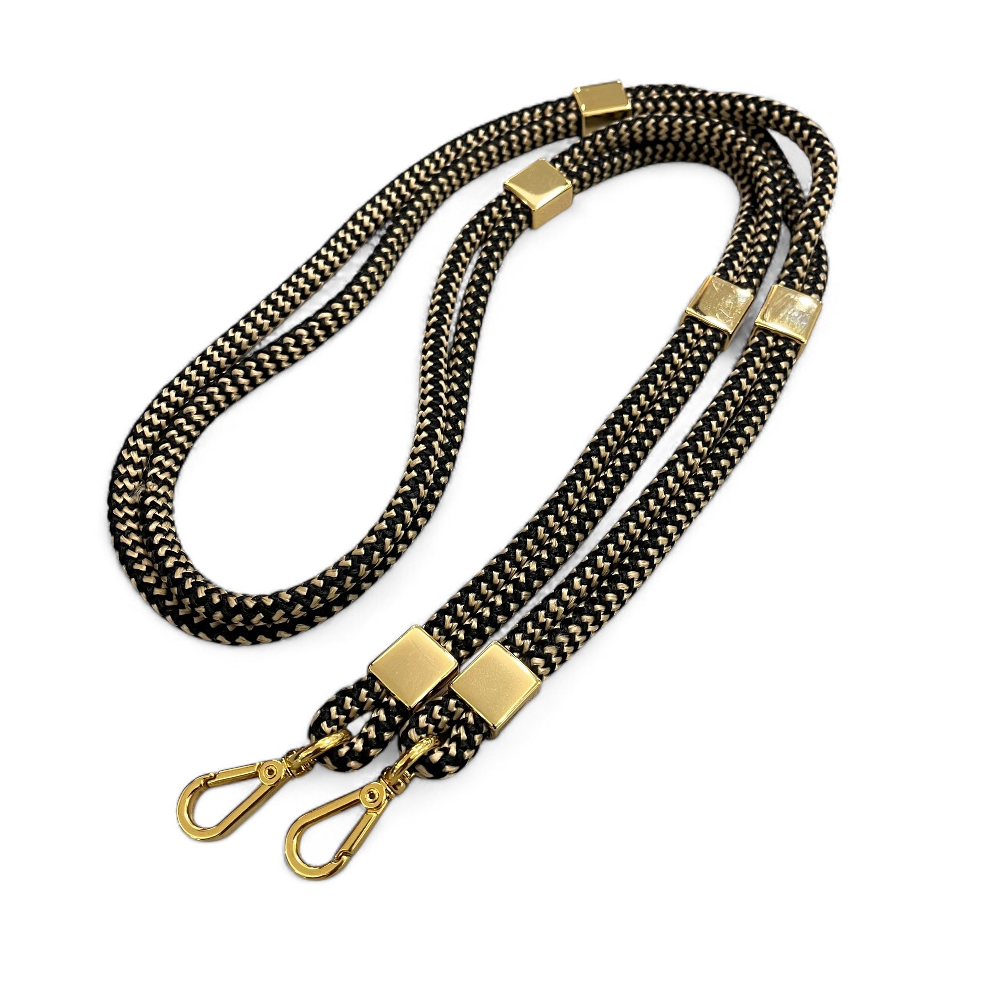 Alça Nina de corda náutica com passadores quadrados em metal dourado, pode ser usada à tiracolo ou na transversal, ótima opção em momentos em que as mãos devem estar livres. Combina com várias bolsas Lukey Bags, escolha a sua.