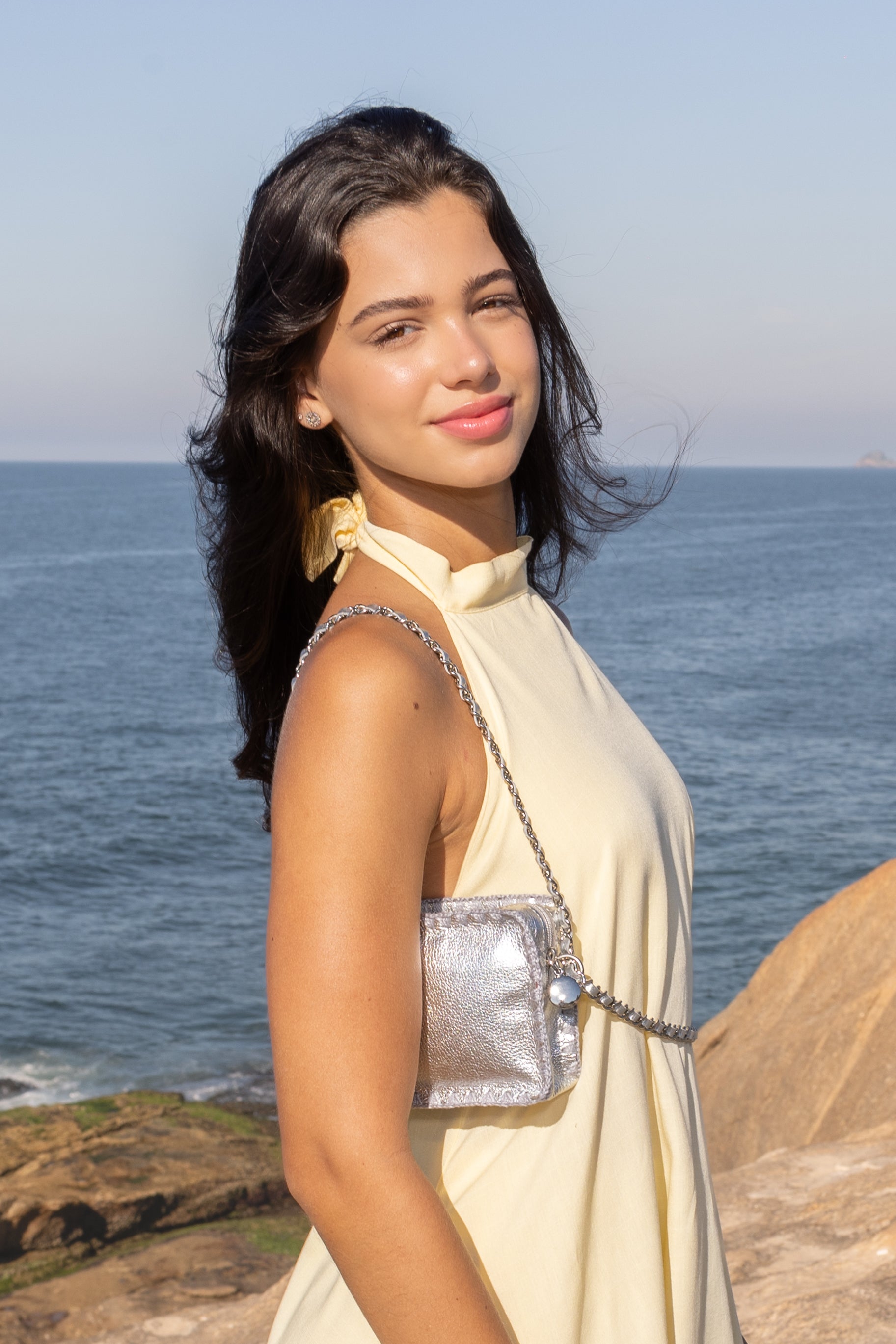 Bolsa Bia metalizada+ Alça de corrente e courino